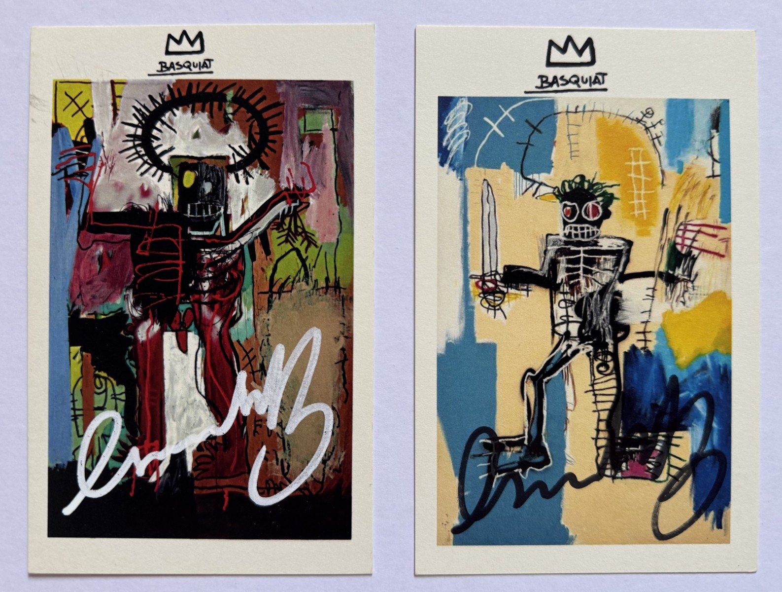 Deux cartes postales en couleur sur papier. Signé au marqueur.