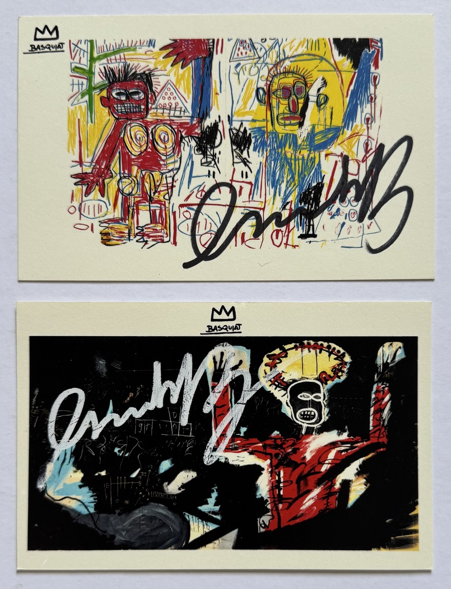 Deux cartes postales en couleur sur papier. Signé au marqueur.