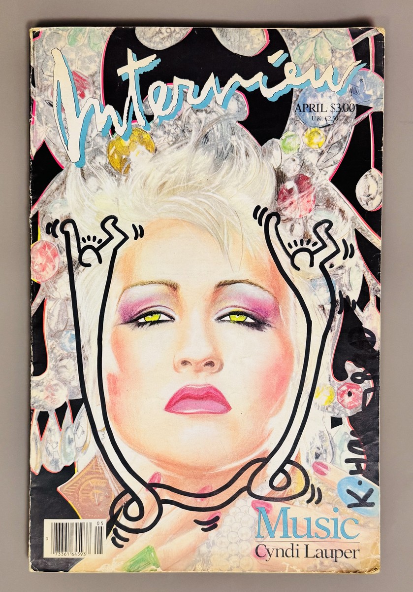 Dessin au marqueur noir sur le magazine Interview d’Avril 1986, special Music (magazine créé par Andy Warhol en 1969). Signé à la main et daté 89 sur la couverture (Annie Lennox). Très bon état de conservation.