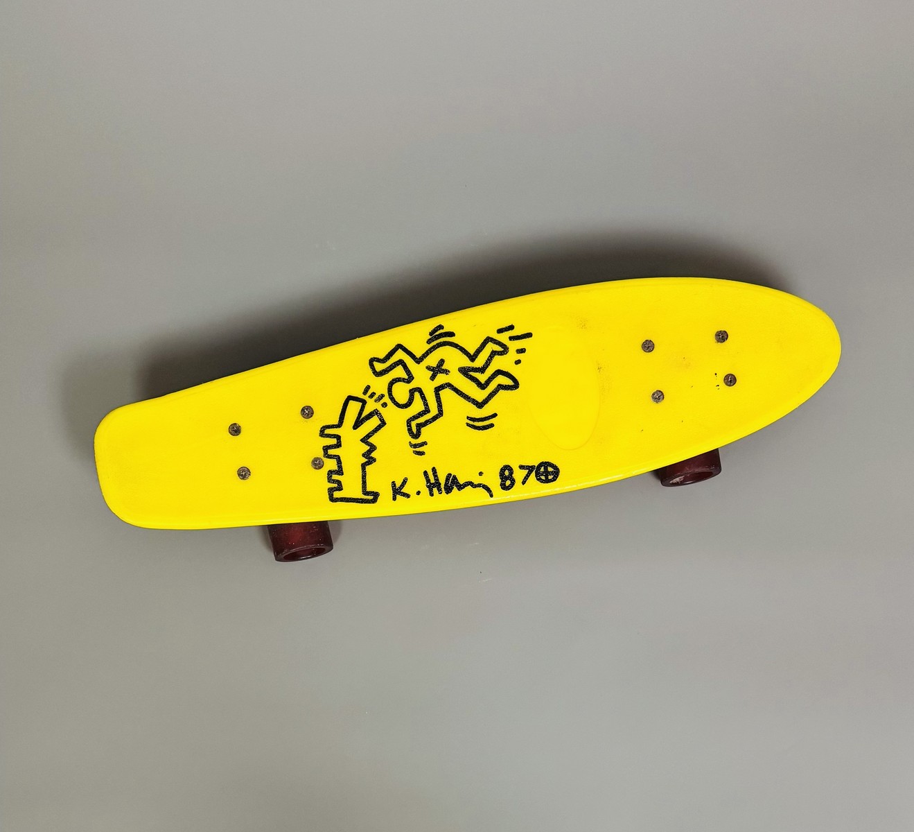 Marqueur sur planche de skate en plastique. Signé et daté.