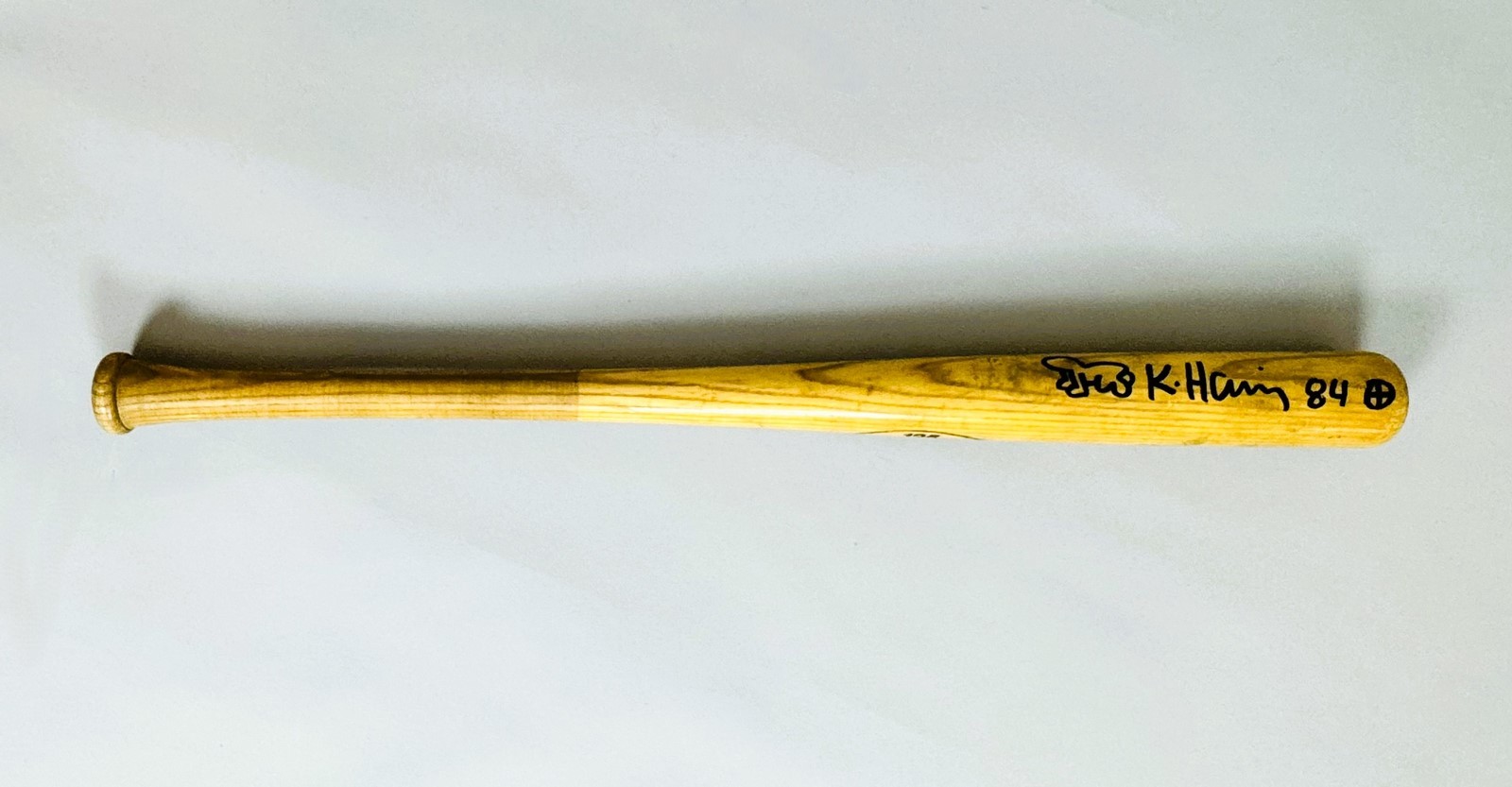 Dessin original au feutre noir sur batte de baseball. Signé et daté « 84 ».