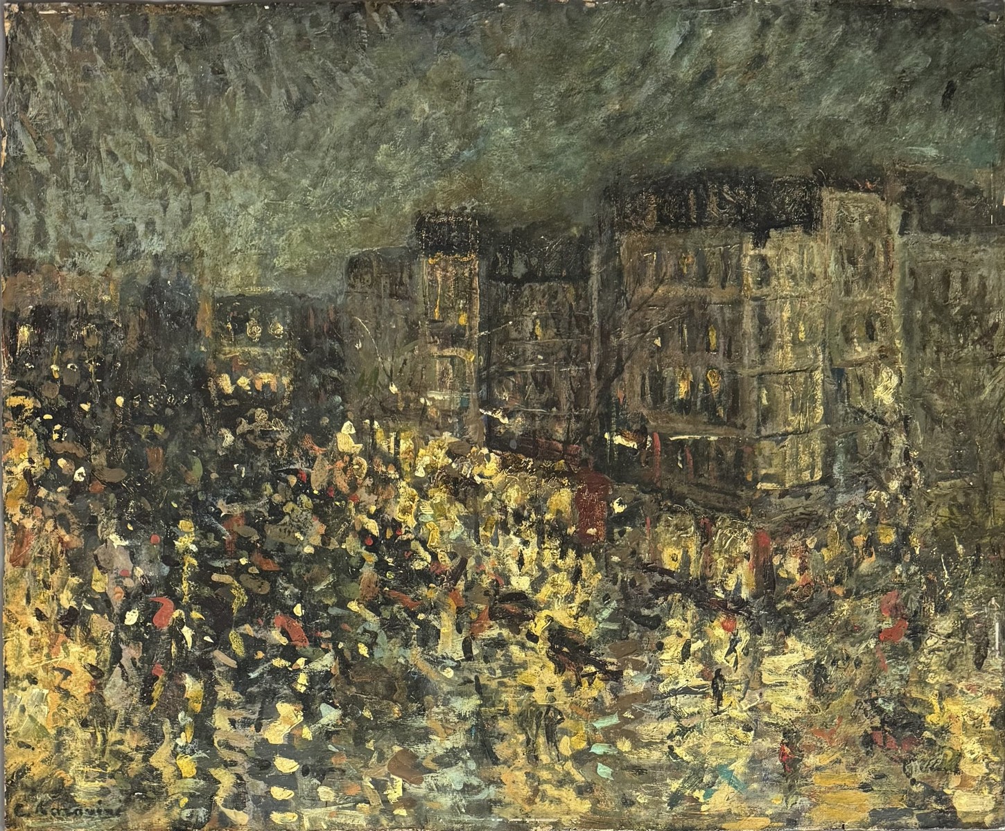 Lot 6 - Konstantin Alexeievitch KOROVIN (1861-1939),Attribué à. Les Grands Boulevards de Paris animée la nuit.