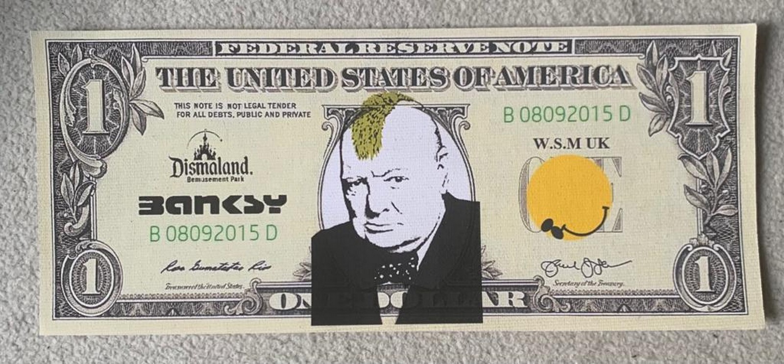 Certificat au dos de l’œuvre mentionnant « This is to certify that the work described above is an original work of art by Dismal Mouse, Acquis lors de Dismaland, l’évènement de Banksy à Weston Super Mare en Aout-Septembre 2015. Dimensions 27 x 12 cm
