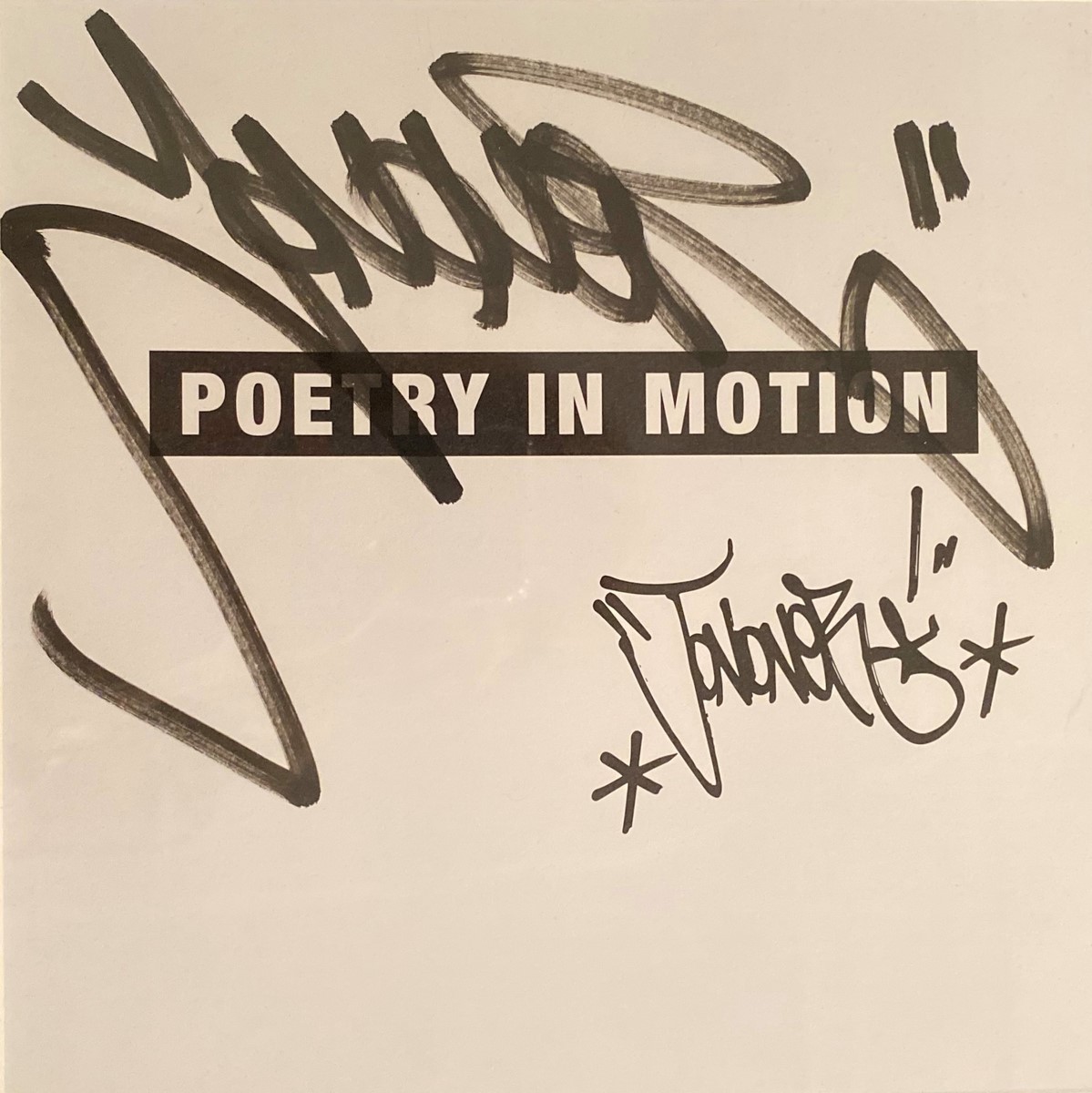 Dédicace au marqueur noir sur page de garde d’ouvrage.