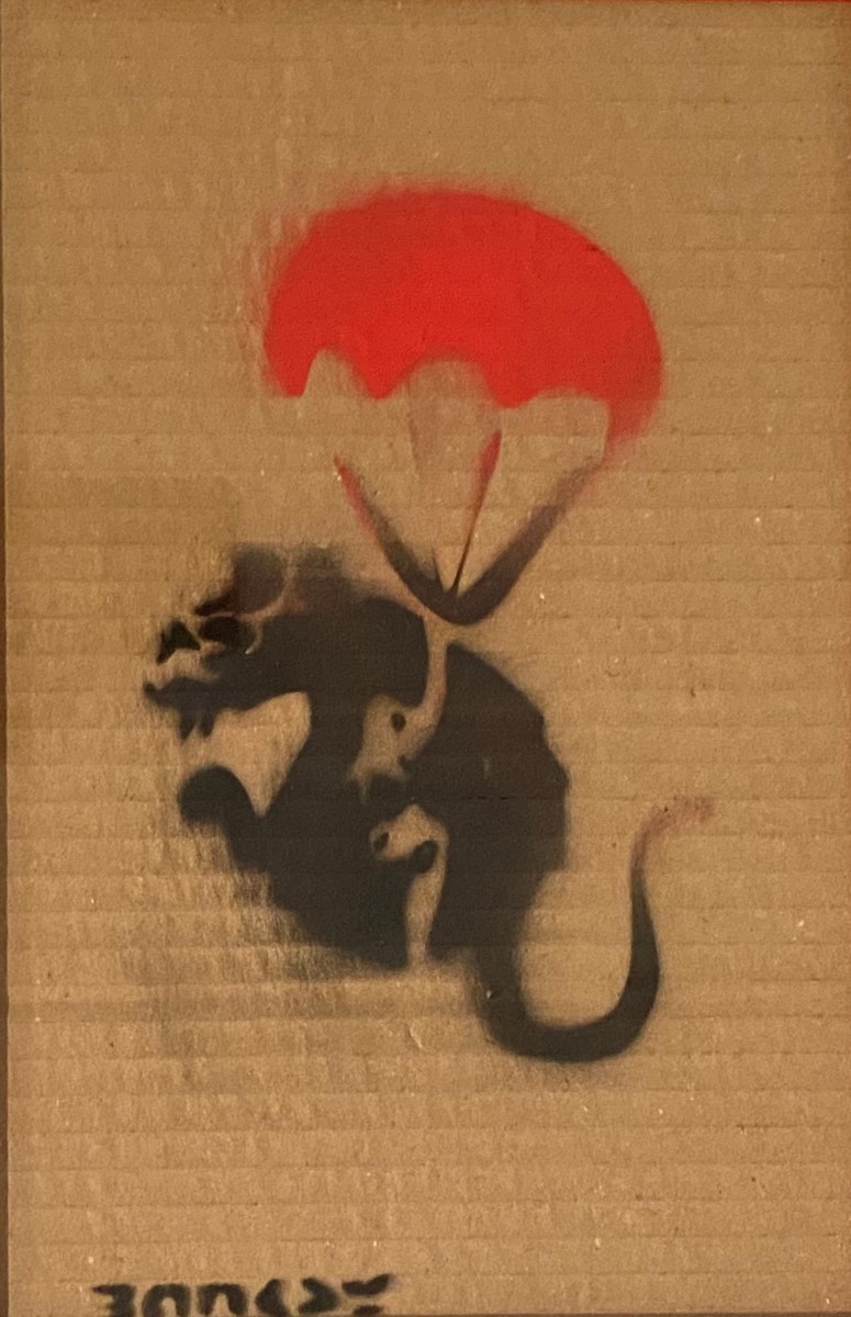 Pendant la période d’exposition, Dismaland a organisé un Art Libre où ils cachent l’œuvre à divers endroits et vous pouvez l’emporter chez vous. (Certains dommages sur le carton en sont la cause.) Livré avec ticket original d’entrée et Map Dismaland.