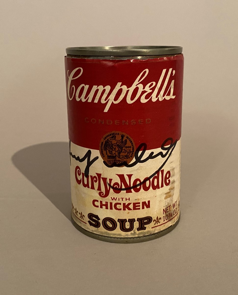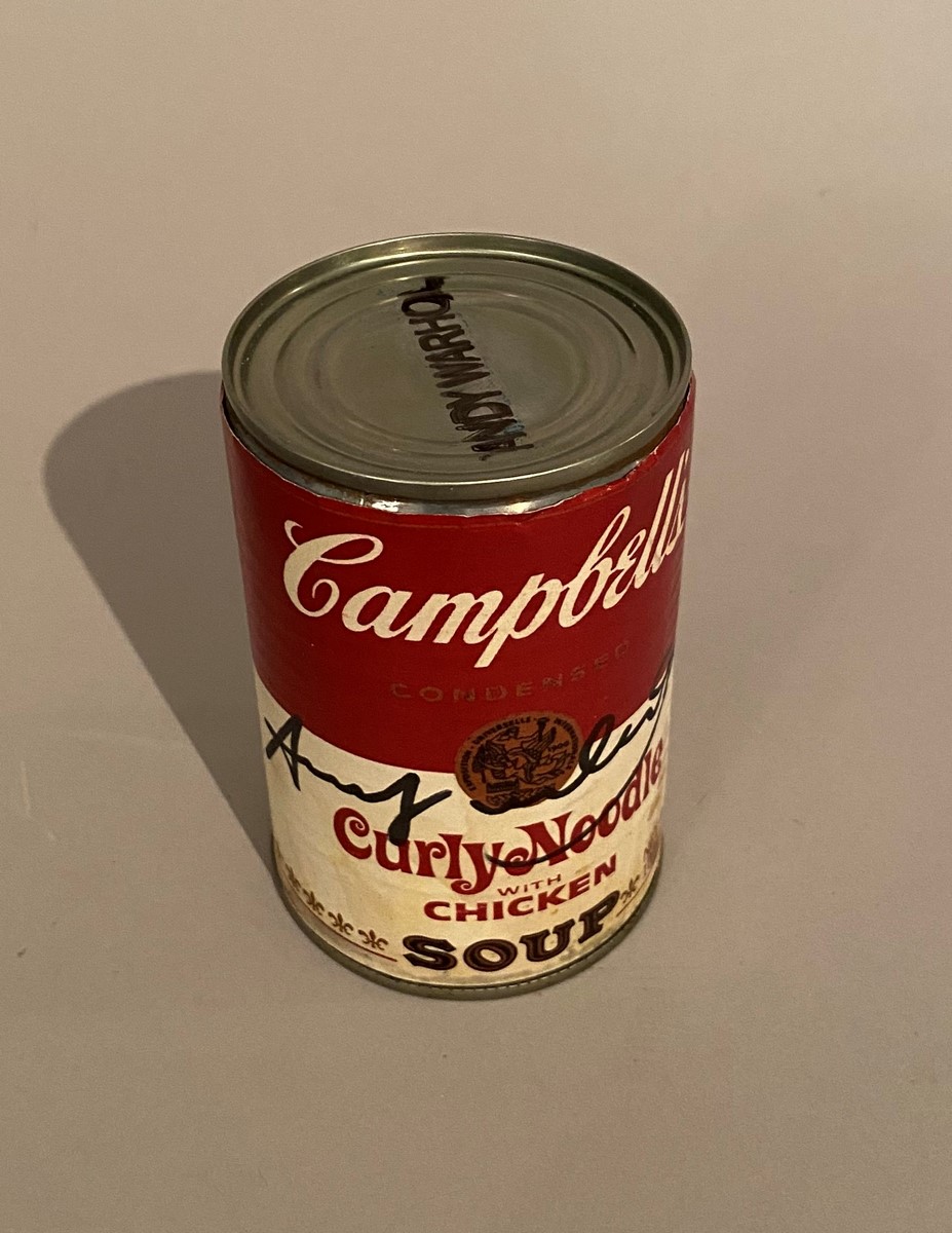 Boîte de conserve métallique. Signé au feutre sur l’étiquette. Cachet de la signature dessous et sur une étiquette à l’intérieur.