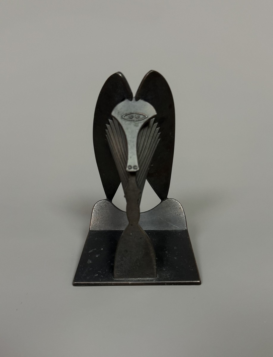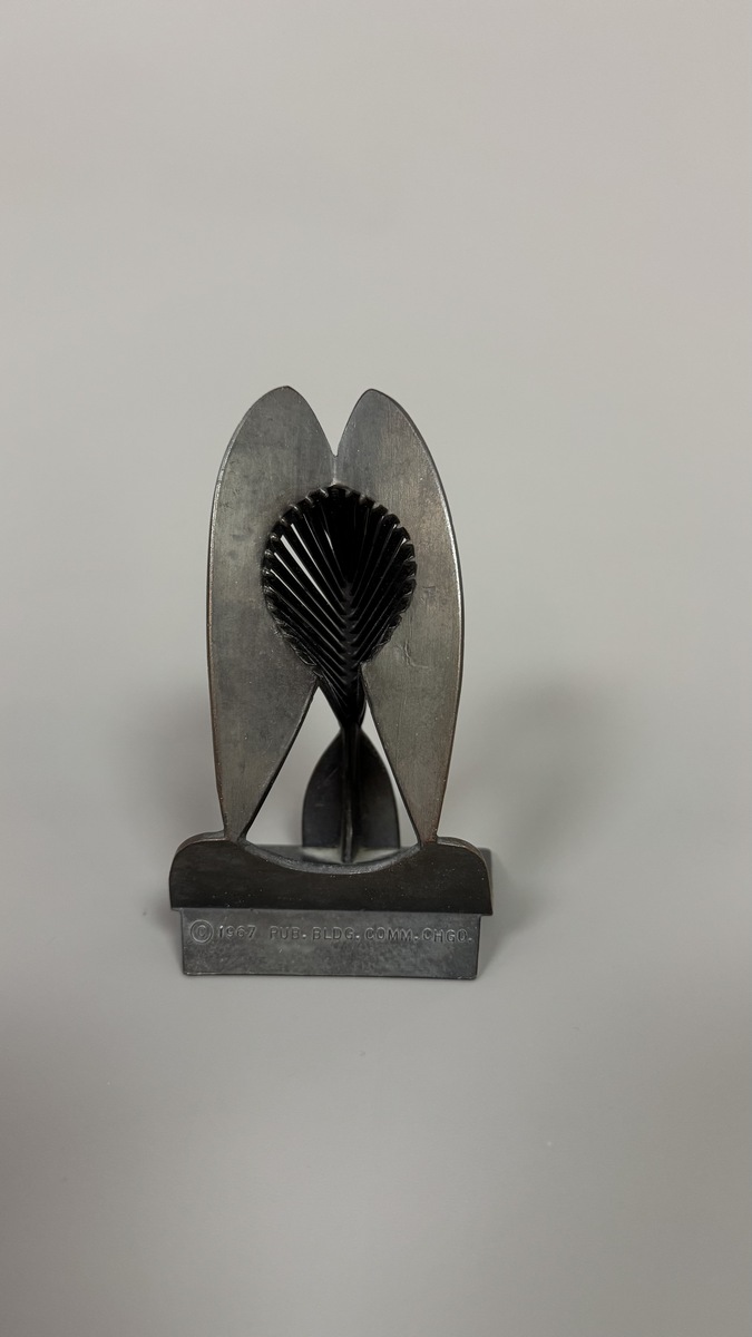 Sculpture en métal noirci. Maquette d’après la sculpture monumentale cubiste située à Chicago Marqué au dos « © 1967 PUB. BLDG. COMM. CHGO ».