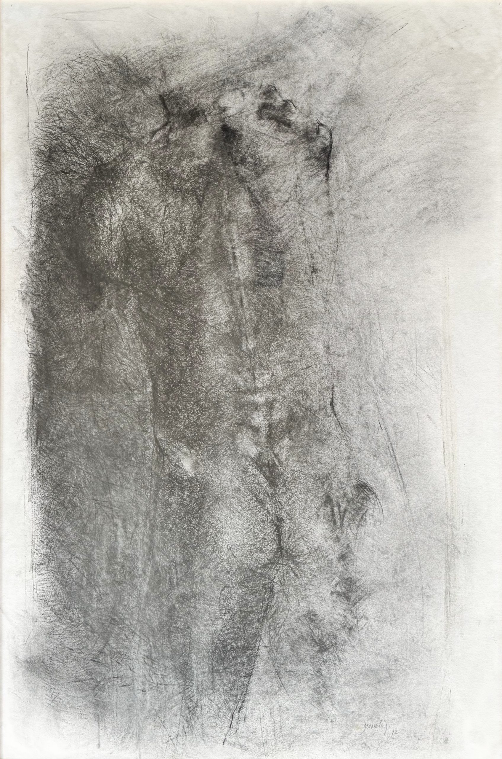 Philippe DESOMBERG (Né en 1945)Sans titre, 1992.Technique mixte et fusain sur papier, signé et daté en bas à droite.118 x 78 cm