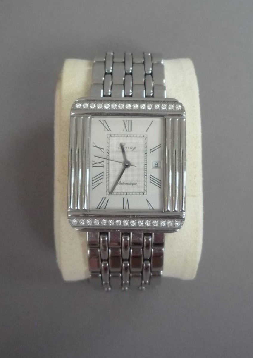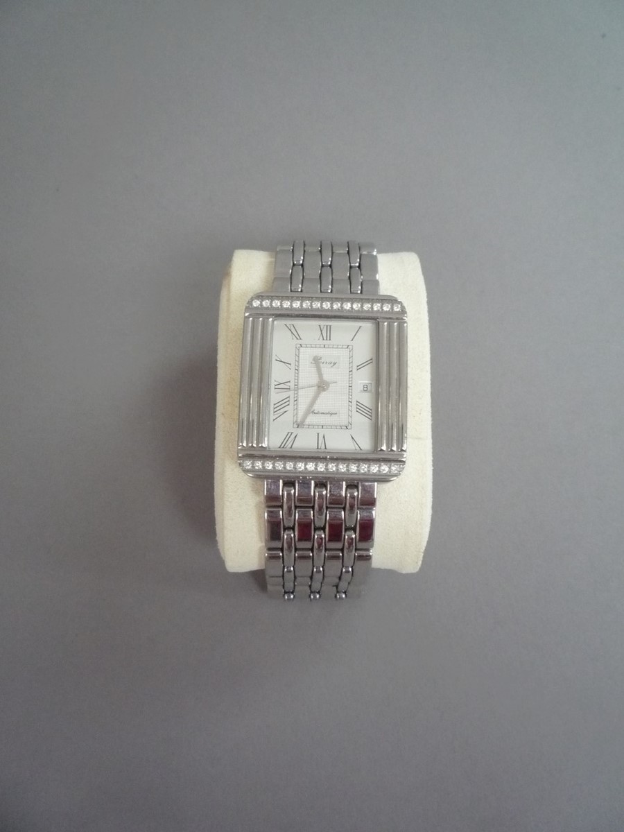 POIRAY – MONTRE-BRACELET pour homme en acier » Ma Première » Grand Modèle, sertie de deux barrettes de brillants.
