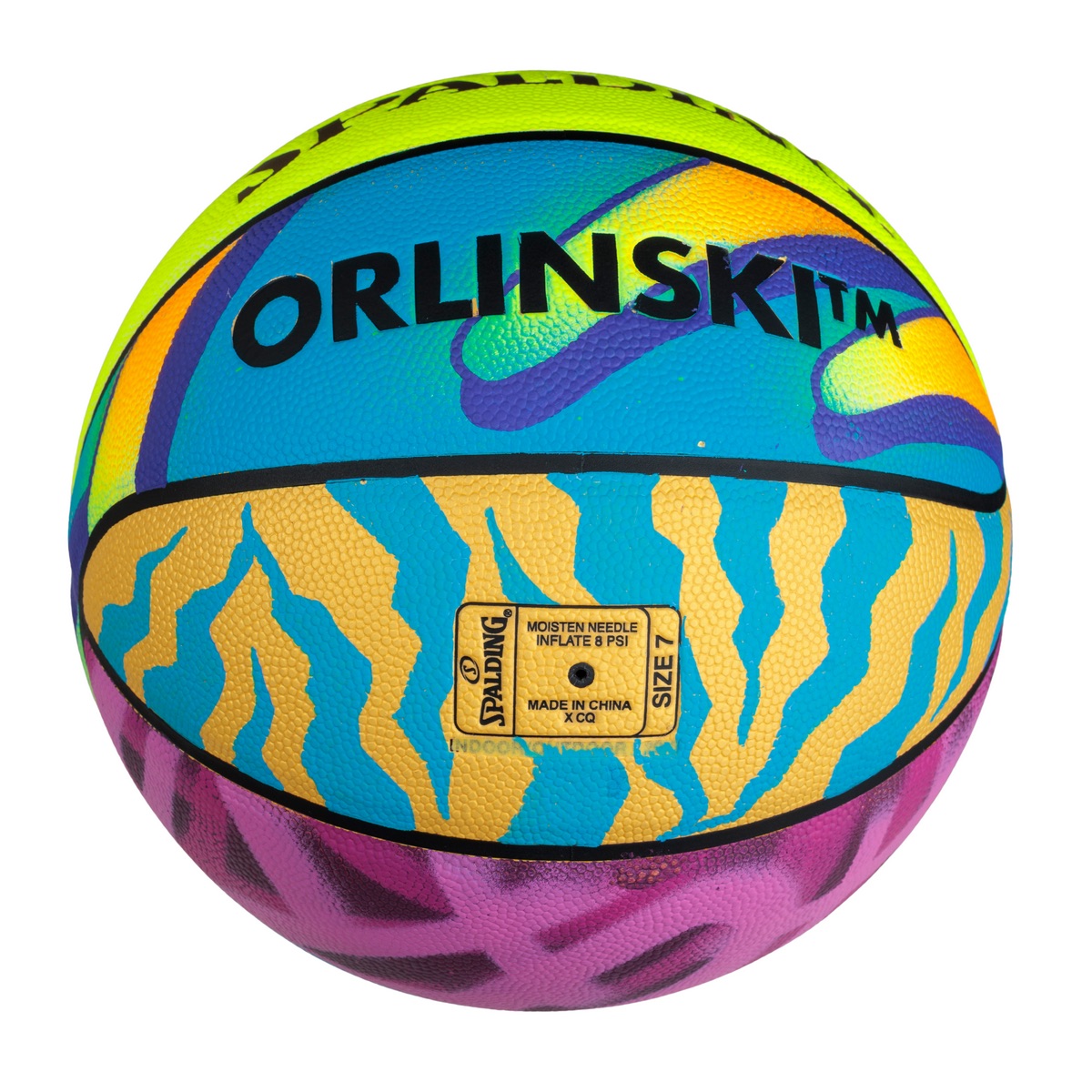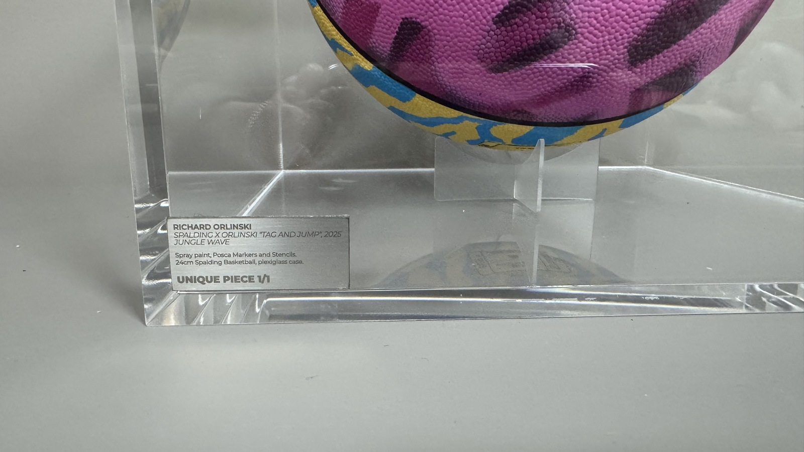 Chaque pièce incarne l’énergie brute du tag, entre éclats de couleurs et codes urbains, avec une inspiration résolument américaine. De la rencontre entre le savoir-faire de Spalding et l’audace de l’atelier Orlinski naît une fusion inédite entre art contemporain et culture street.