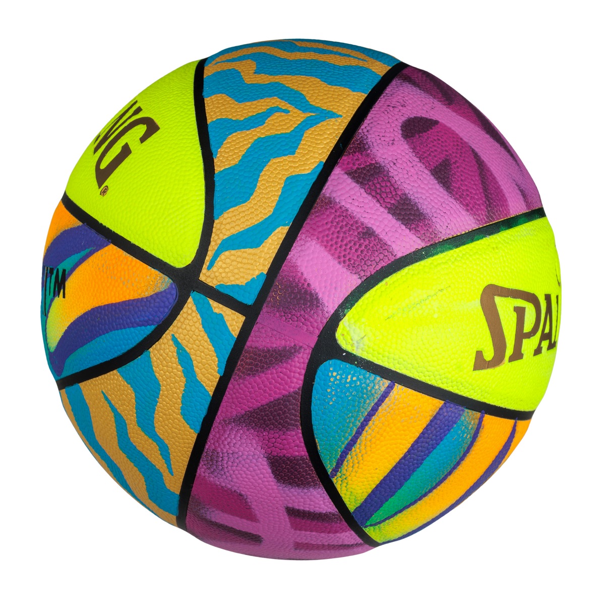 Icônes du sport, ces ballons Spalding deviennent ici le terrain d’expression de l’artiste : tagués à la main dans son studio, à l’aide de spray, marqueurs Posca et pochoirs, ils se transforment en véritables toiles en mouvement.