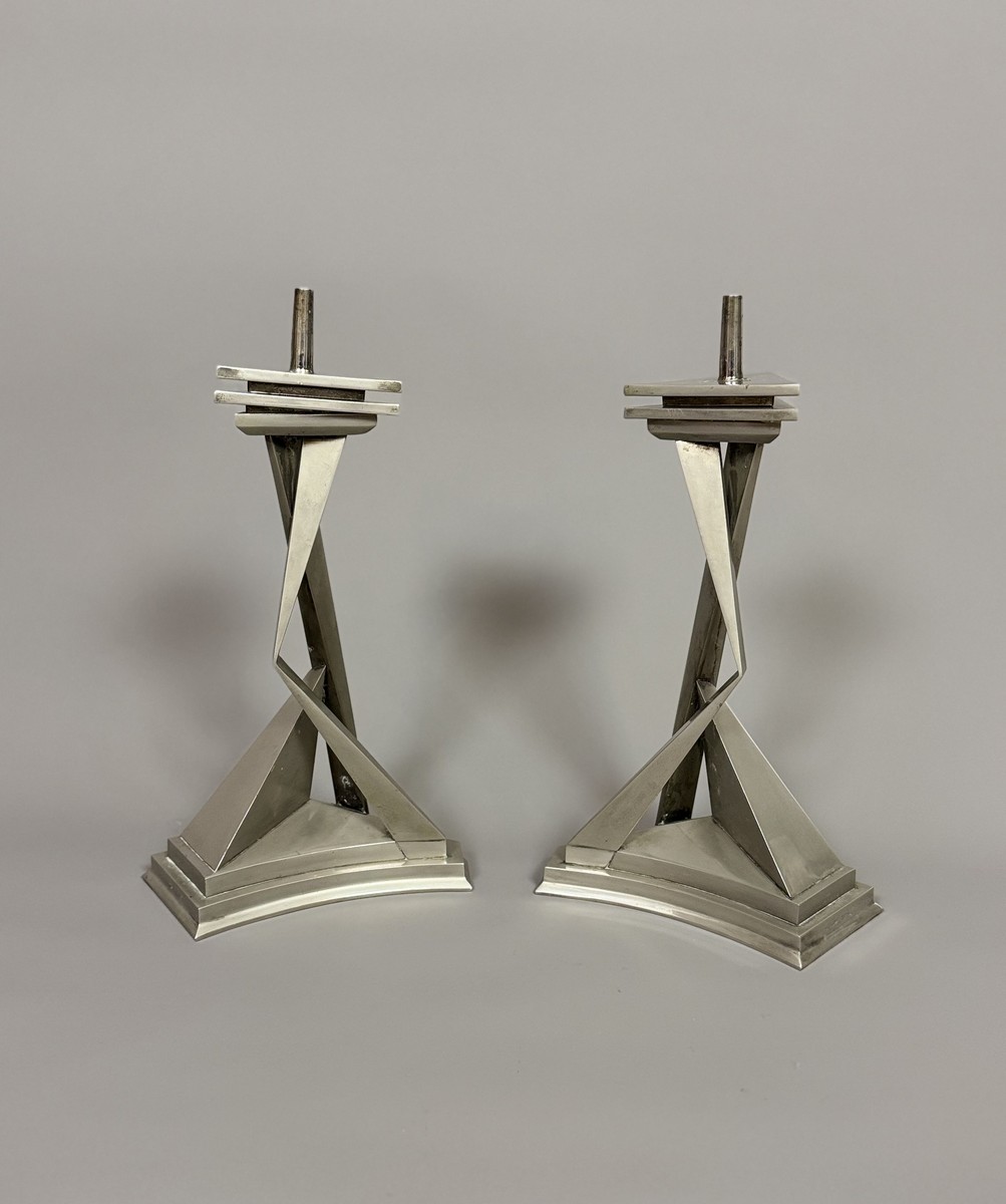 Paire de deux chandeliers en laiton argenté.