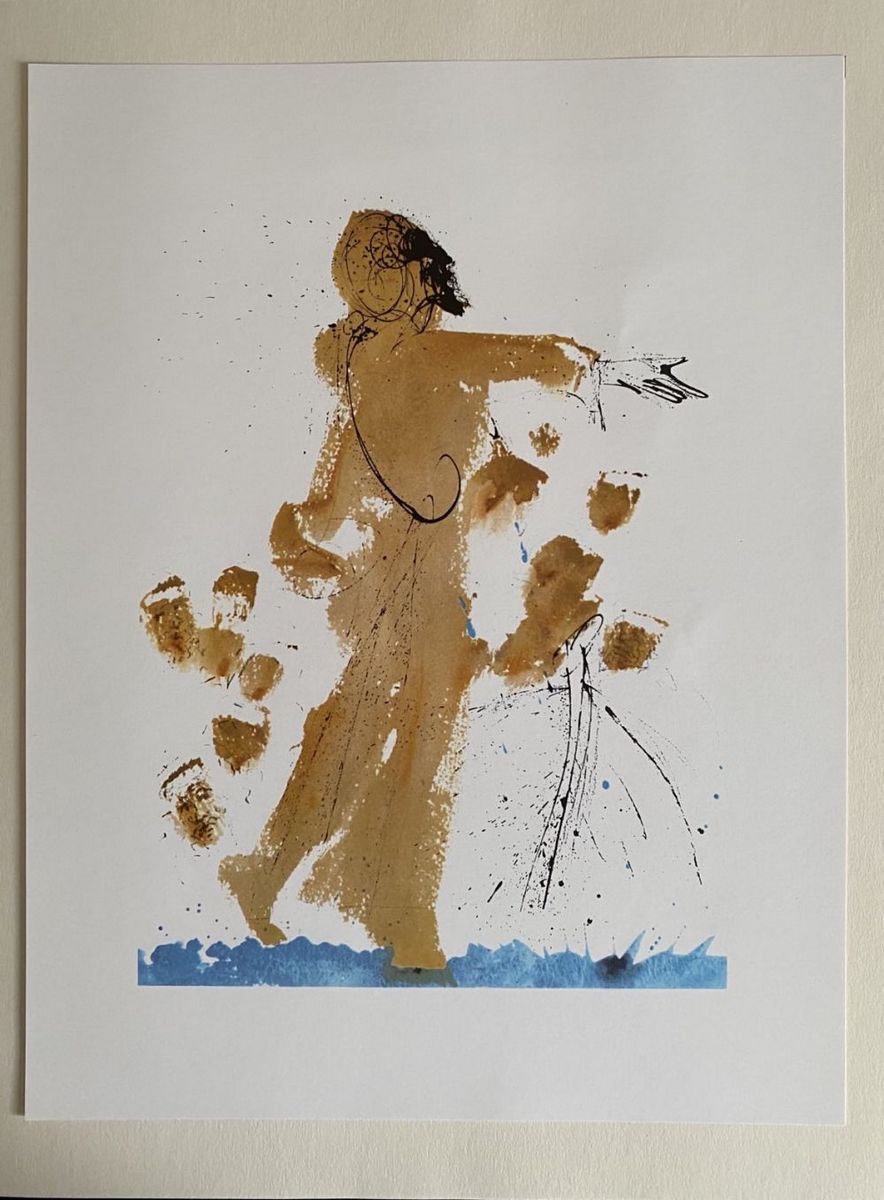 Lithographie en couleurs sur papier 170 gr avec passe-partout. Signée dans la planche, non numérotée. Signature de Dali imprimée sur le passe-partout. Imprimée par l’atelier de lithographie Rizzoli Editore à Milan. Bon état, 35 x 27 cm (papier), 40 x 30 cm (passe-partout).