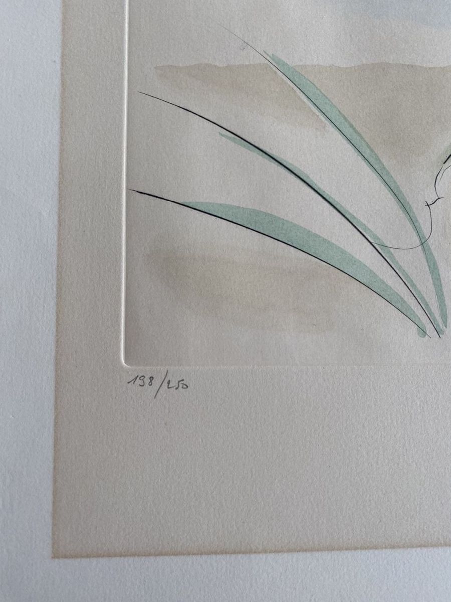Original drypoint & pochoir on paper, signed in pencil & numbered 198/250. Extracted from the portfolio « Le Bestiaire de La Fontaine dalinisé ». Publisher: Robert Mouret, Editions des Maîtres Contemporains, 1974. Ref.: Michler-Löpsinger 653-664. Good condition, 76 x 57 cm.