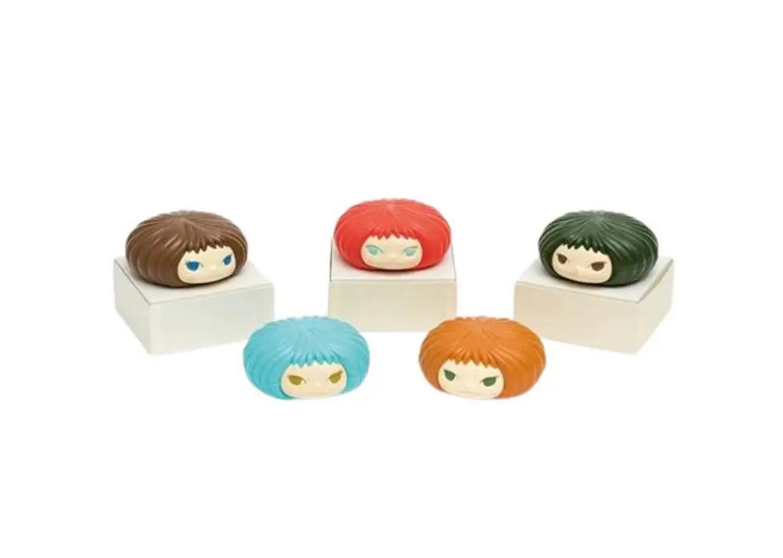 Lot 130 - YOSHITOMO NARA (NE EN 1959) Gummi Girl Candy year, 2006. Ensemble de cinq bonbonnières en plastique. Signatures et dates imprimées dans la masse. Présentées dans leurs boîtes d’origine.