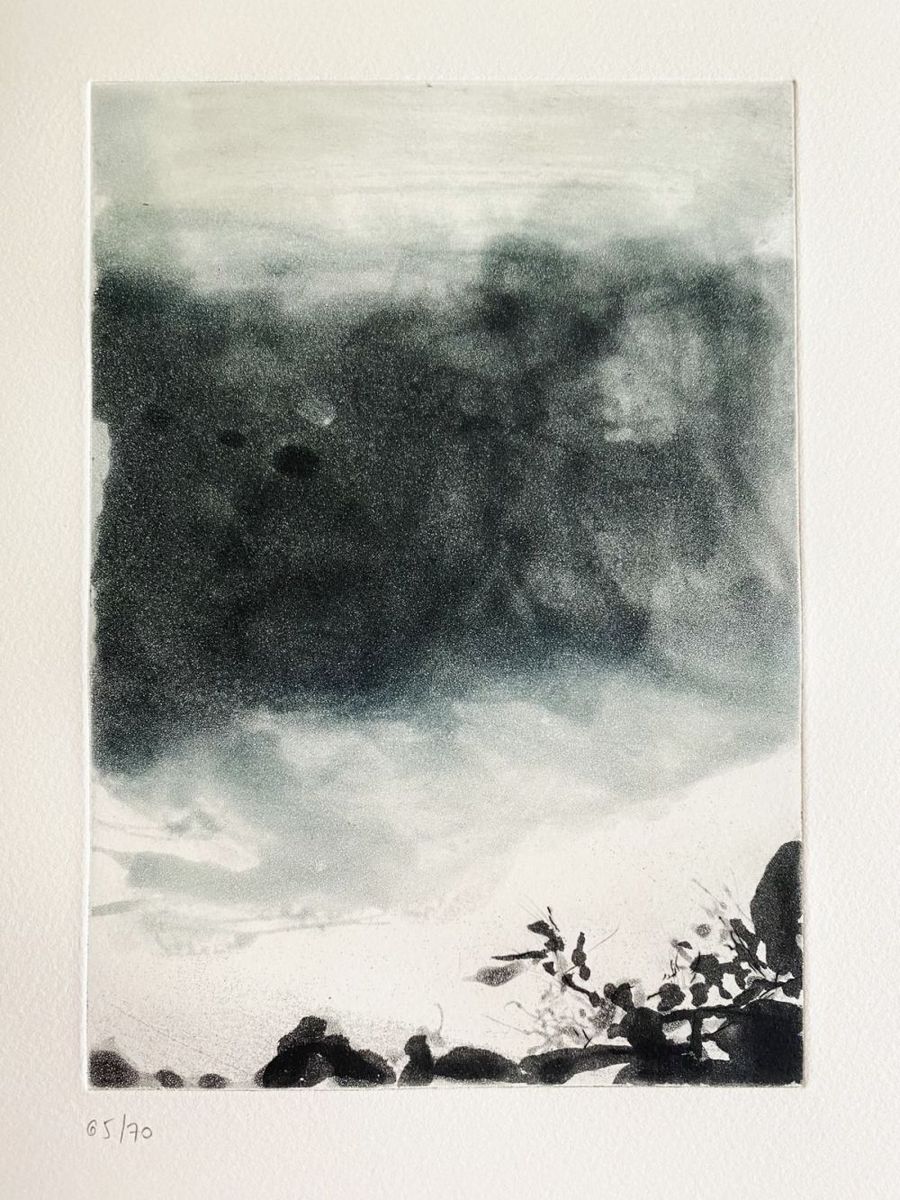 Eau-forte et aquatinte originales sur papier vélin, non signée, numérotée 65/70. Éditeur : Fata Morgana, Montpellier, 1991. Réf. : Agerup 347. Bon état, 32 x 24 cm.